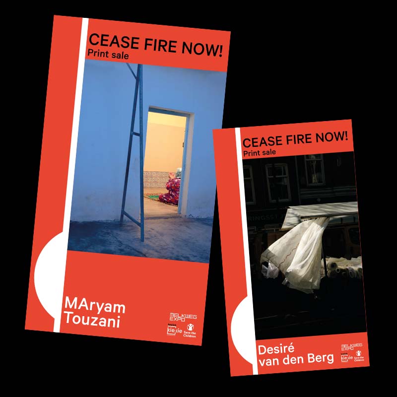 The Cease Fire Now! campaign in light of a print sale organised by Melkweg Expo in order to raise money for Save the Children. Campaign started because off recent war activities in Gaza. General argument of this campaign was to seize weapons in this area.